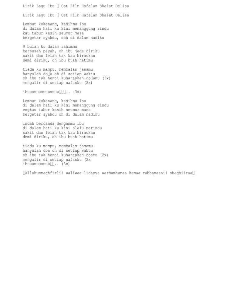 Related : Lirik Lagu Oh Ibu / 0 ratings0% found this document useful (0 votes)..