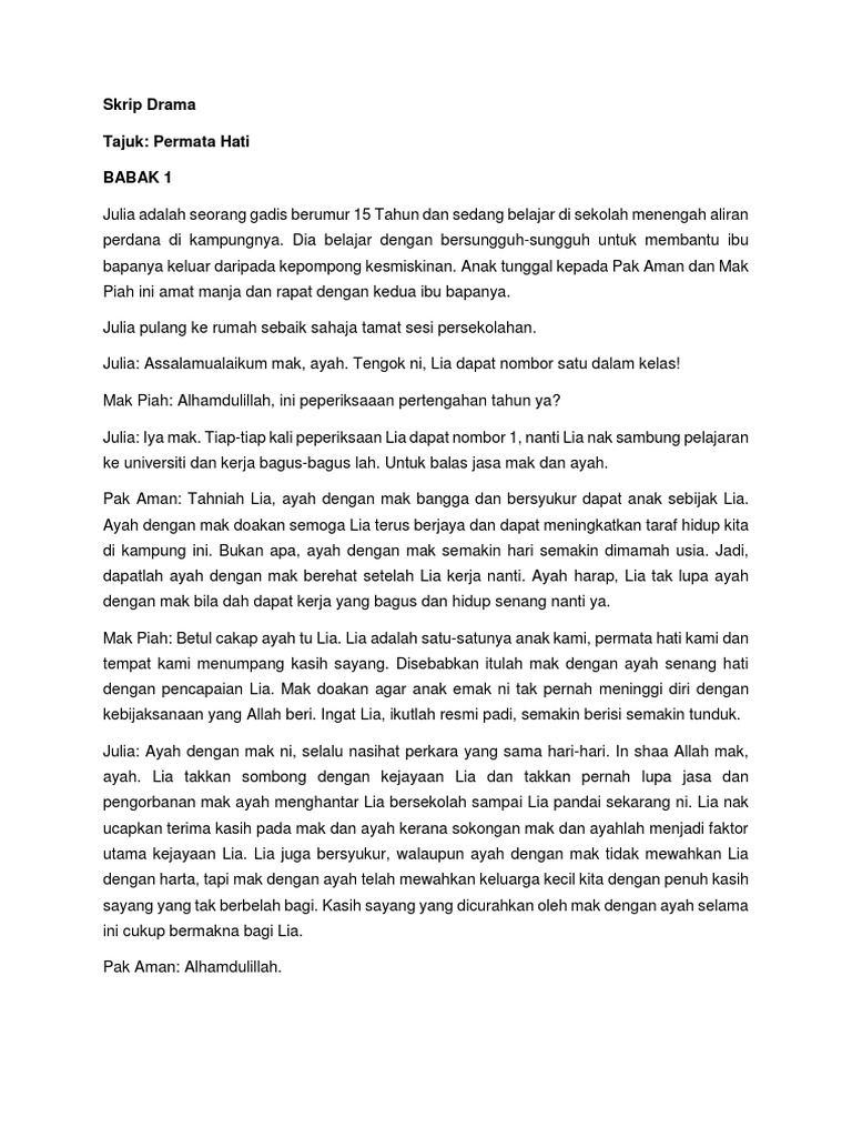 Anda akan diberikan modul sebagai rujukan. 5 segment visual audio supers 00:00:00 opening on: 'peranan remaja dalam penggunaan teknologi hijau'. Jika anda paham dunia sastra, pasti anda sudah mengenal dengan. Contoh drama singkat 7 orang. Amat sesuai untuk rujuk semua terutamanya pelajar sek menengah. Ini contoh peribahasa yang familiar dan patut diingat. Asas menulis skrip drama tv. Novera arif dwiangga 1 year ago. Contoh dialog drama free from rapidshare. Skrip drama untuk hari kemerdekaan. Contoh drama sekolah antara guru dan murid9. Artikel pendidikan contoh dialog drama2.